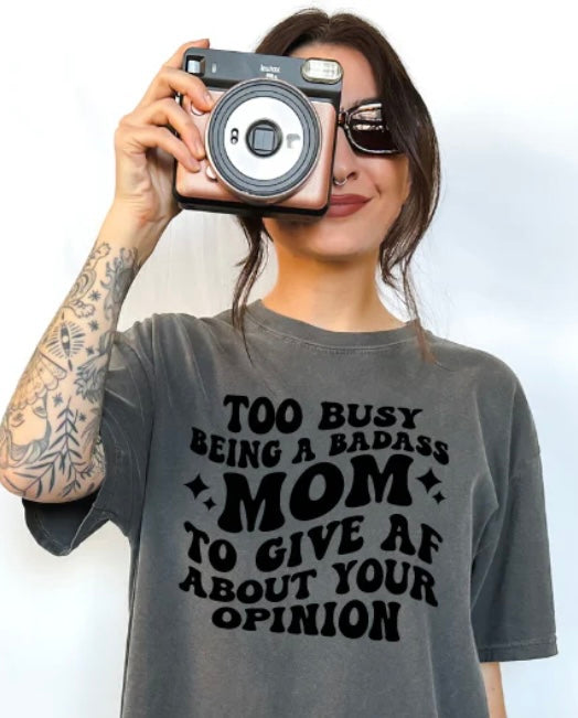 Embrace your badass mom status with this single screen print transfer. The bold design speaks for itself, reminding everyone that their opinion doesn't matter. Perfect for hoodies, t-shirts, and crewnecks. Join the club today!