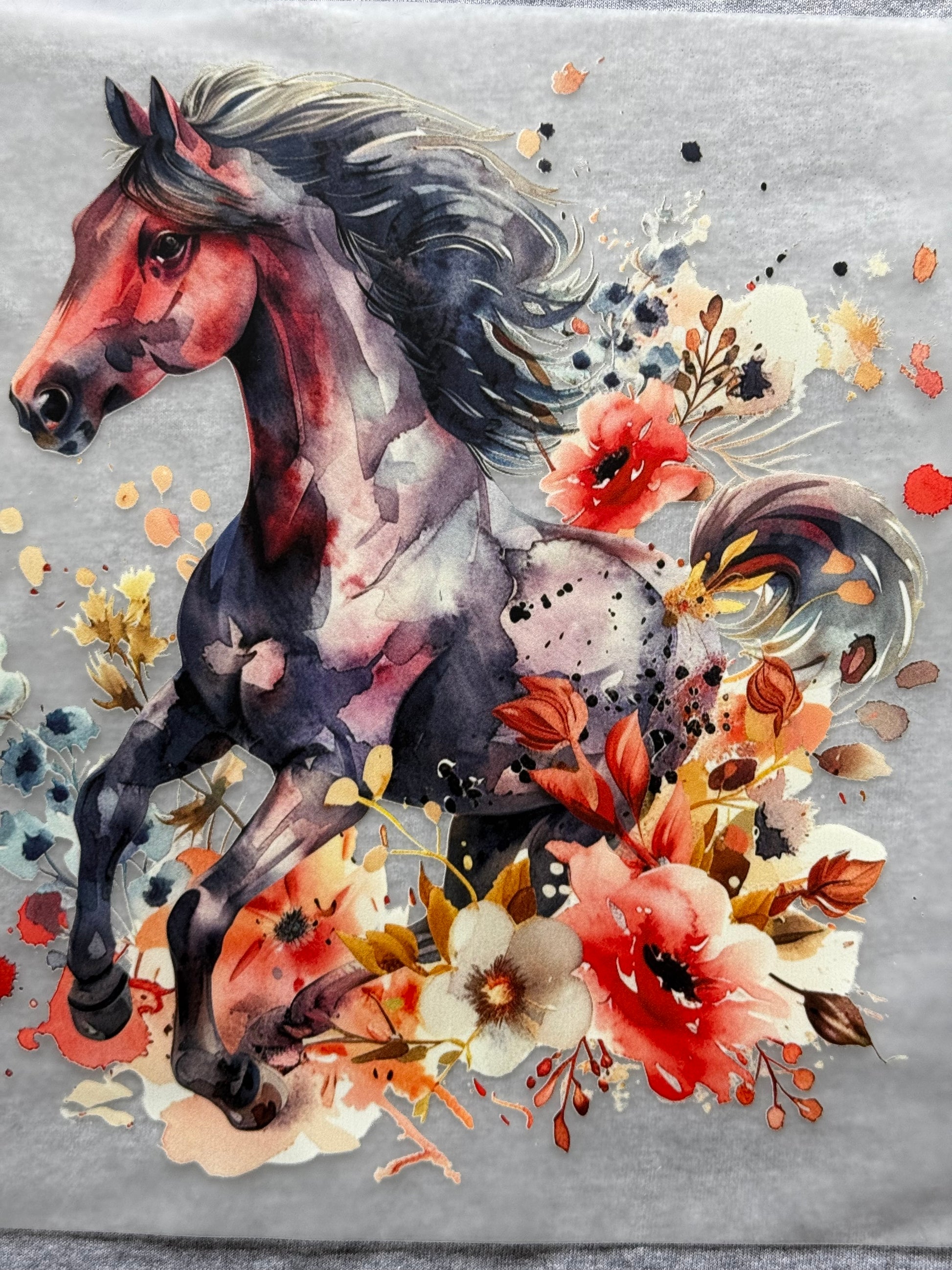 Experience the regal beauty of horses with our Beautiful Horse Clear Film Transfer. This majestic design features vibrant flowers, adding a pop of color to your t-shirts, hoodies, and crewnecks. Elevate your wardrobe with this stunning and versatile transfer.