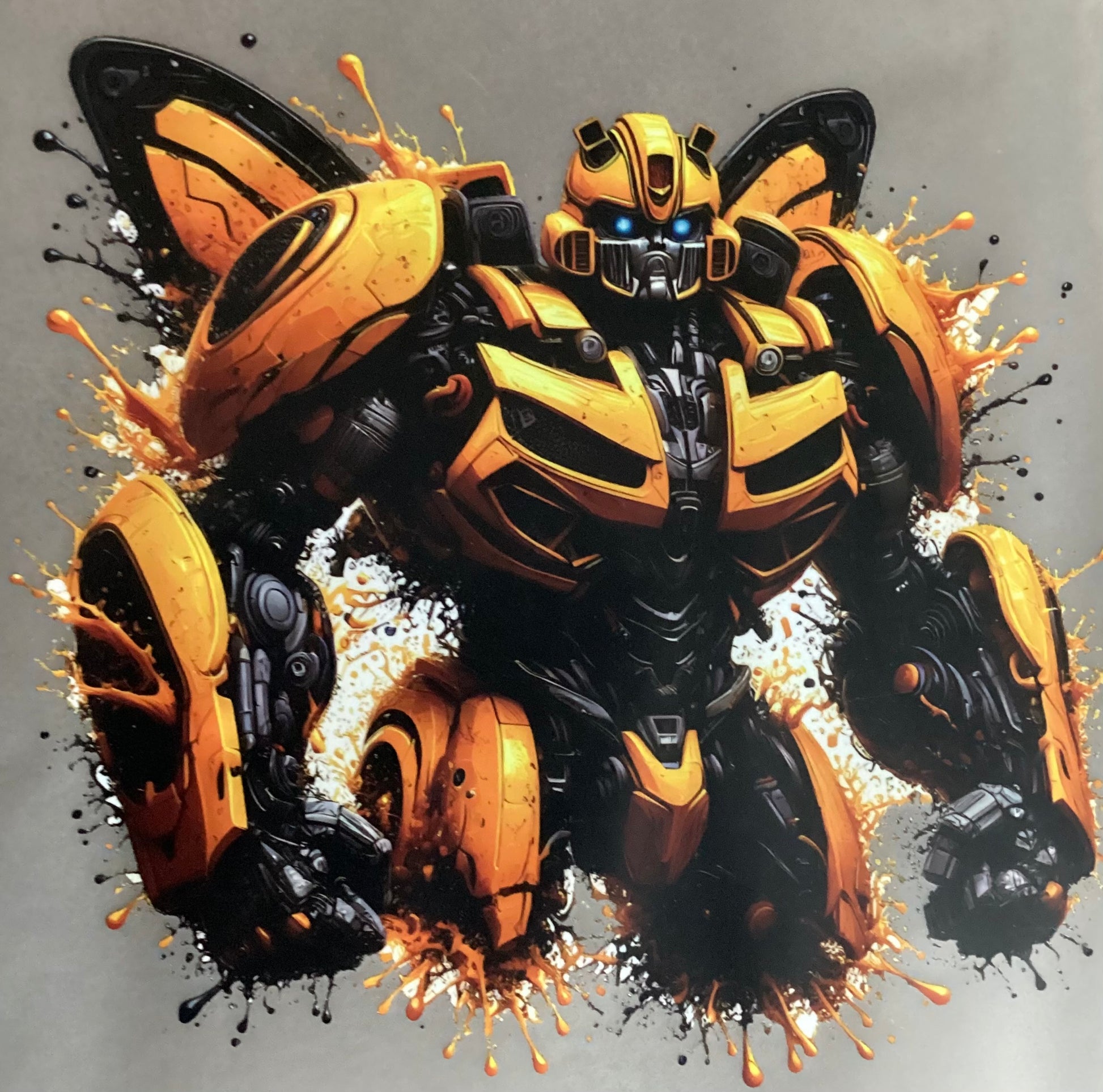 Youth Transfer. This bold and strong bumblebee transformer design adds a vibrant touch to your t-shirts, crewnecks, and hoodies. Elevate your style with the powerful and bright yellow transfer.