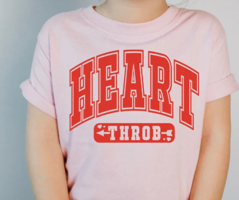 Introducing HEART THROB - the perfect addition to your wardrobe! Featuring a bold red transfer that announces your heart throb status, this fun print is perfect for t-shirts, hoodies, and crewnecks. Don't miss out on this must-have design.