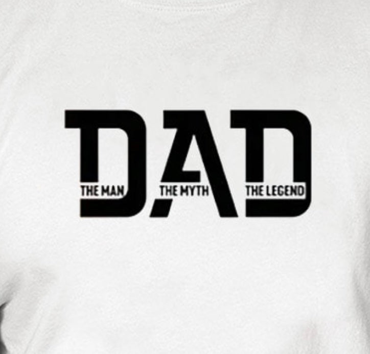 Introducing our DAD Screen Print - the perfect gift for any father figure. This shirt features "The Legend, The Myth, The Man" in bold lettering, showcasing the important and powerful role that dads play. Show your appreciation with this high-quality, stylish tee.