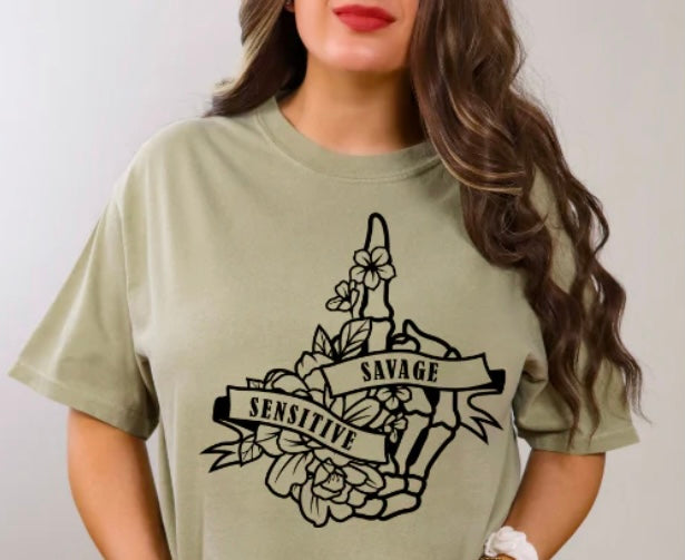 Experience the perfect blend of edginess and sensitivity with our Sensitive Savage collection. Adorned with a striking skeleton hand gesture, our hoodies, t-shirts, and crewnecks exude a fierce attitude while maintaining a touch of emotional depth. Unleash your wild side while staying true to your sensitive nature.