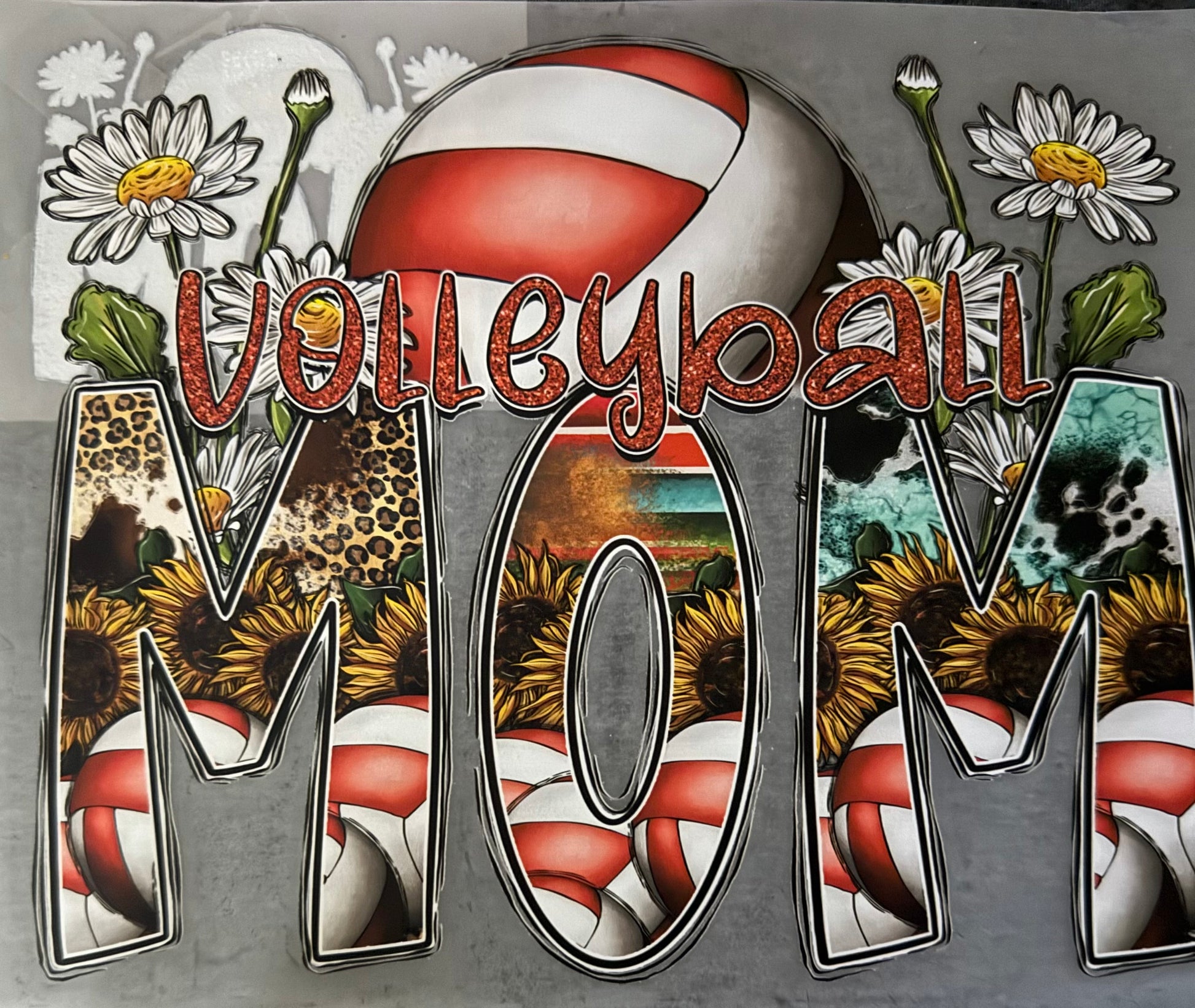 Made for volleyball moms, this transfer features a fun design adorned with daisies and sunflowers on t-shirts, crewnecks, and hoodies. Add some cheer to your wardrobe and show off your support for your volleyball player with this vibrant and unique transfer.